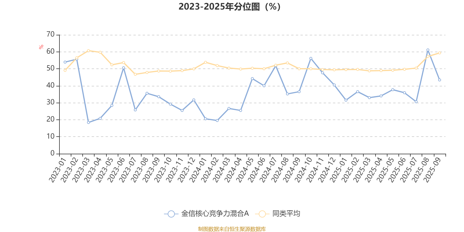 通过所选区间该基金净值增长率分位图,可以观察该基金与同类基金业绩比较情况。图为坐标原点到区间内某时点的净值增长率在同类基金中的分位数。