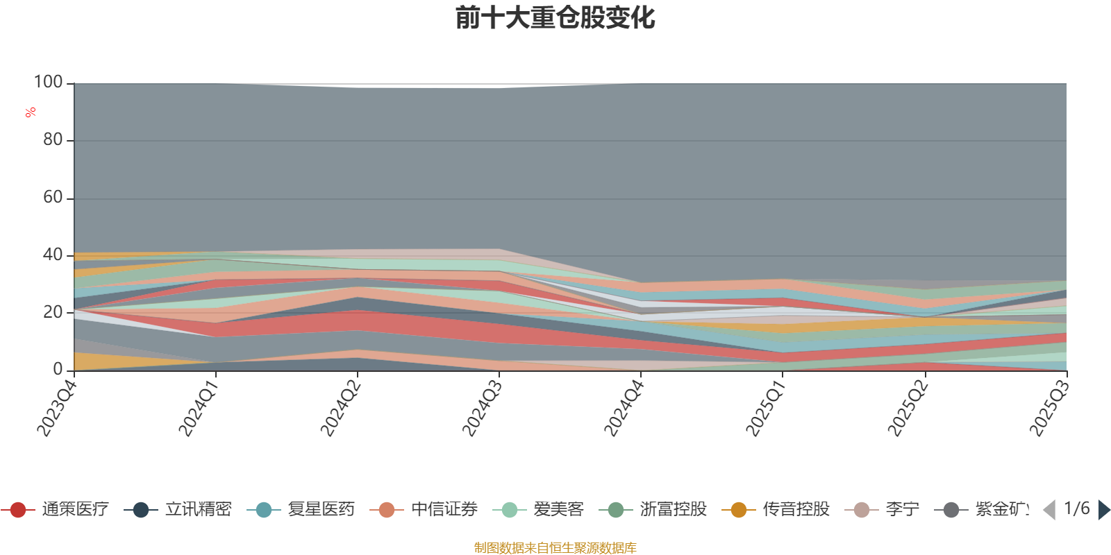 截至2025年三季度末,基金十大重仓股分别是浙富控股、长春高新、爱美客、贵州茅台、复星医药、中国中免、中国交建、上海临港、中国建筑、滨江集团。