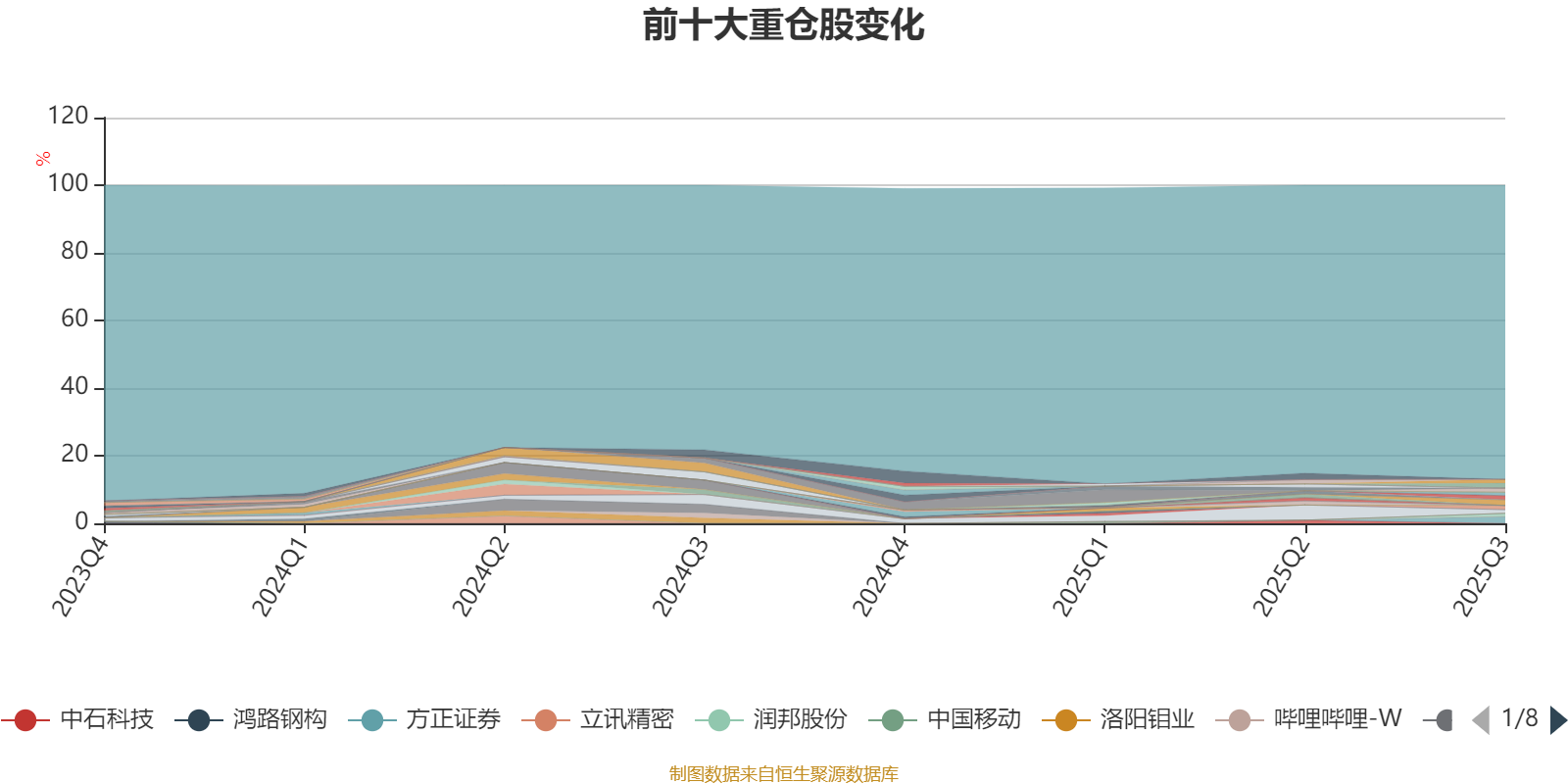 截至2025年三季度末,基金十大重仓股分别是方正证券、国金证券、财通证券、宁德时代、国元证券、绿盟科技、城建发展、腾讯控股、东方证券、润邦股份。