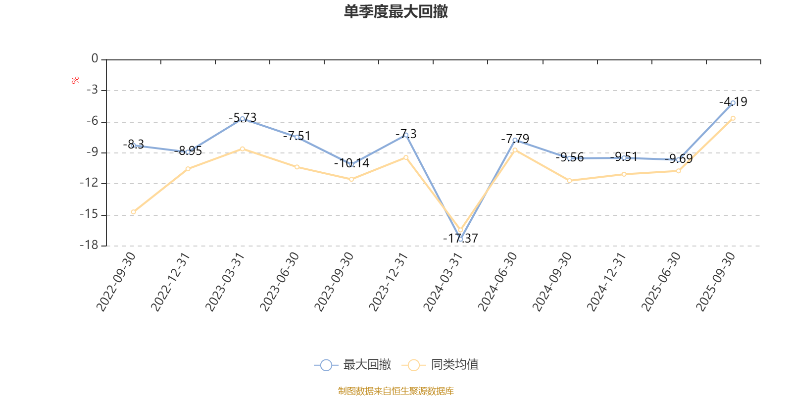 截至10月28日,基金近三年最大回撤为30.15%,同类可比基金排名128/513。单季度最大回撤出现在2024年一季度,为17.37%。