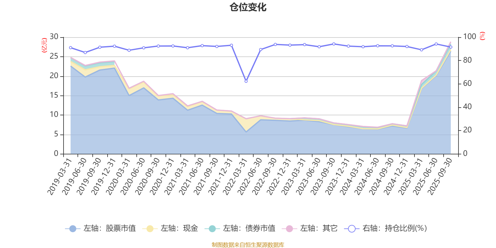据定期报告数据统计,近三年平均股票仓位为92.45%,同类平均为87.62%。2023年三季度末基金达到94.22%的最高仓位,2022年一季度末最低,为62.26%。