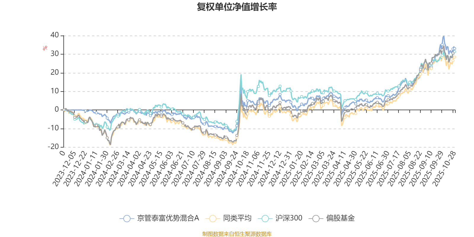 截至10月28日,京管泰富优势混合A近三个月复权单位净值增长率为15.08%,位于同类可比基金281/621;近半年复权单位净值增长率为27.96%,位于同类可比基金332/619;近一年复权单位净值增长率为27.11%,位于同类可比基金315/611。