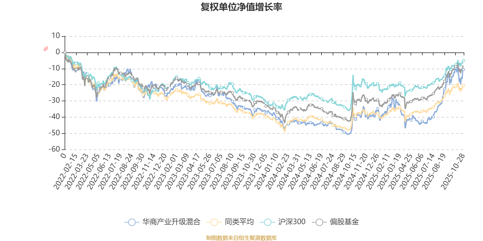 截至10月28日,华商产业升级混合近三个月复权单位净值增长率为35.84%,位于同类可比基金47/689;近半年复权单位净值增长率为52.56%,位于同类可比基金68/688;近一年复权单位净值增长率为45.78%,位于同类可比基金103/653;近三年复权单位净值增长率为14.31%,位于同类可比基金187/364。