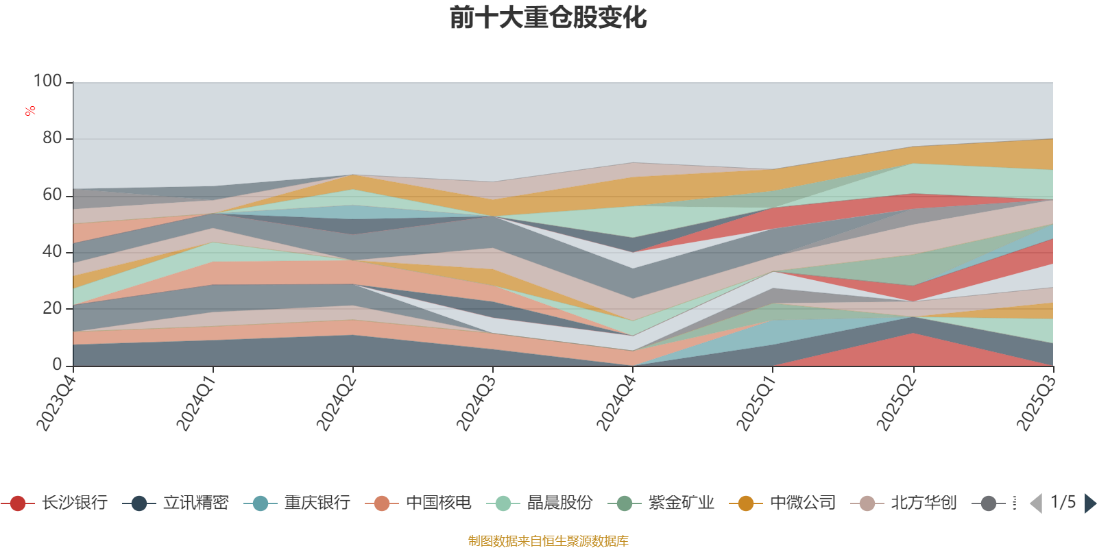 该基金持股集中度较高,近2年前十大重仓股集中度长期超过60%。截至2025年三季度末,基金十大重仓股分别是顺络电子、国电南瑞、金山办公、晶晨股份、海尔智家、迈瑞医疗、立讯精密、中微公司、北方华创、芯碁微装。