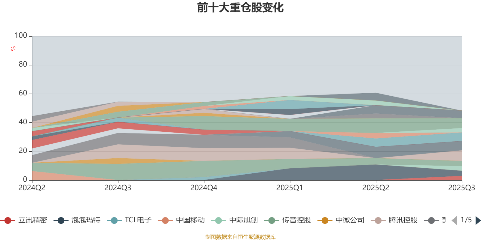 截至2025年三季度末,基金十大重仓股分别是腾讯控股、农夫山泉、ST华通、宁德时代、信达生物、传音控股、泡泡玛特、中际旭创、百济神州、立讯精密。