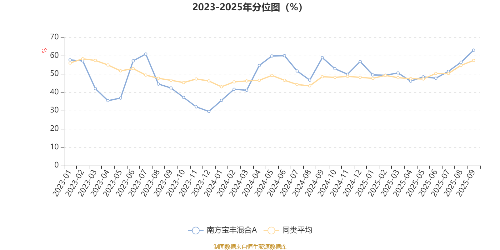 通过所选区间该基金净值增长率分位图,可以观察该基金与同类基金业绩比较情况。图为坐标原点到区间内某时点的净值增长率在同类基金中的分位数。