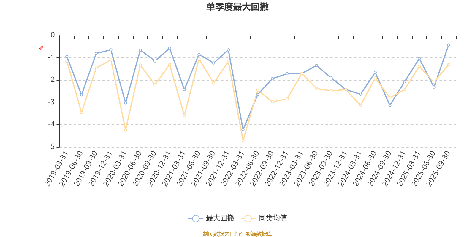截至10月29日,基金近三年最大回撤为4.95%,同类可比基金排名191/534。单季度最大回撤出现在2022年一季度,为4.22%。