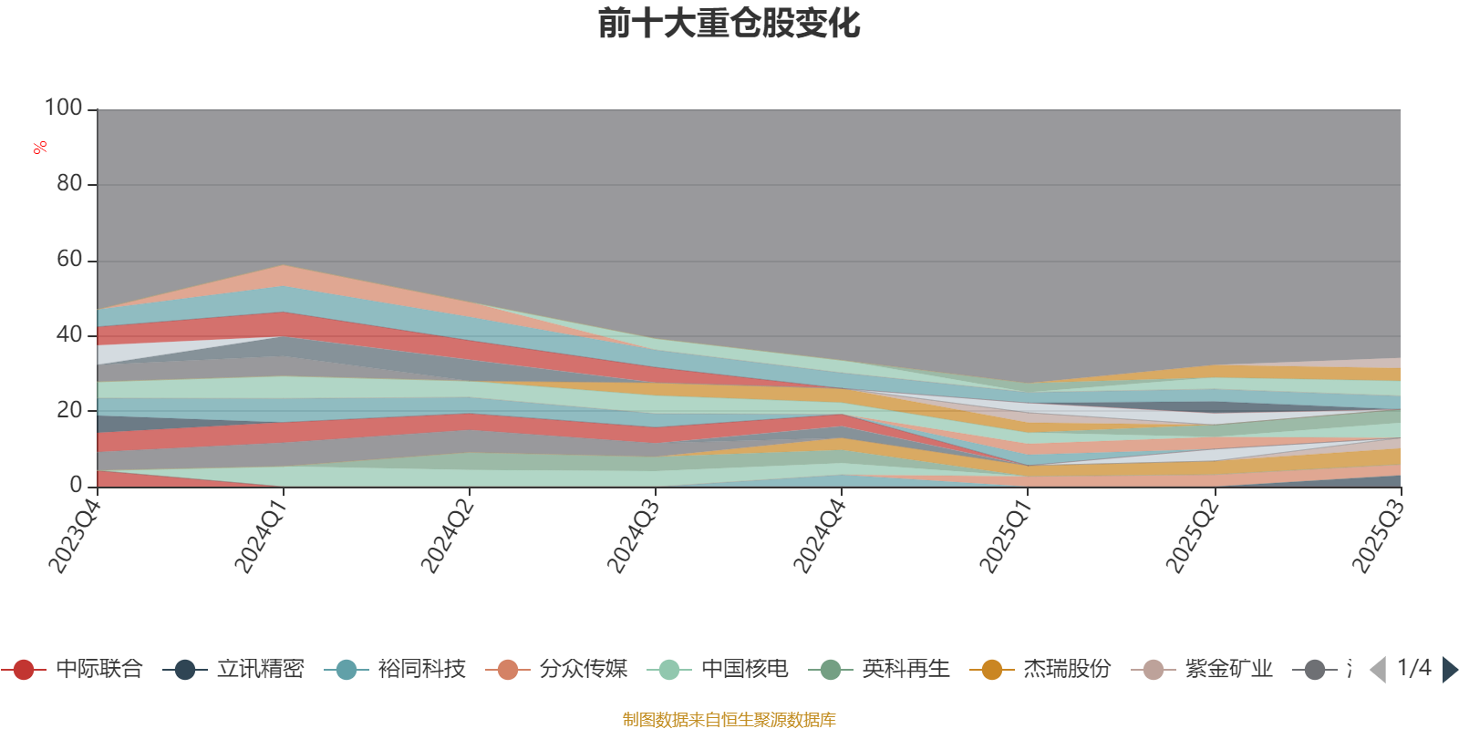 截至2025年三季度末,基金十大重仓股分别是杰瑞股份、九丰能源、宁德时代、瀚蓝环境、电投能源、国邦医药、立讯精密、分众传媒、紫金矿业、正泰电器。