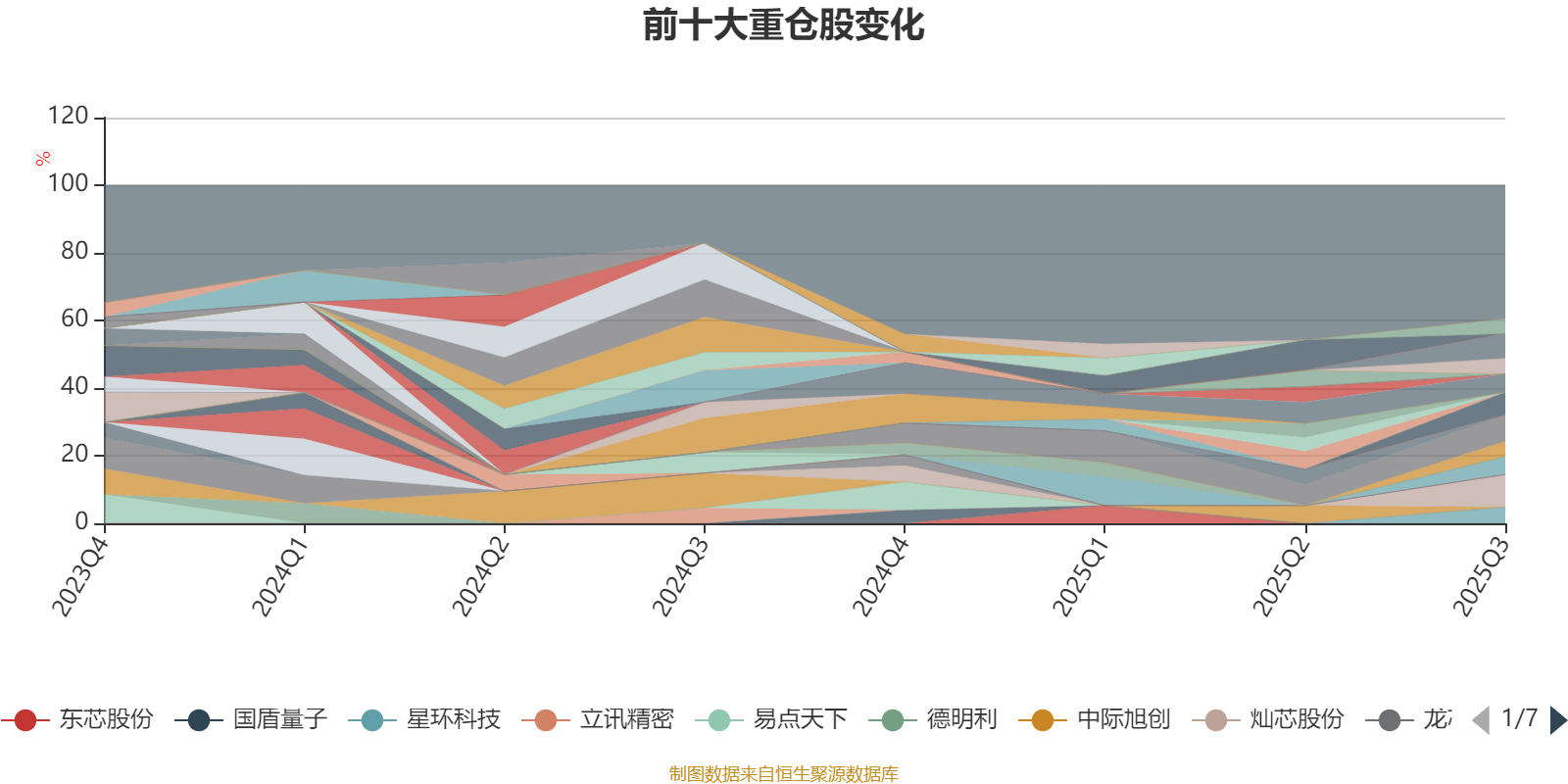 该基金持股集中度较高。截至2025年三季度末,基金十大重仓股分别是灿芯股份、芯原股份、杰华特、寒武纪、中芯国际、东土科技、星环科技、聚辰股份、富临精工、乐鑫科技。