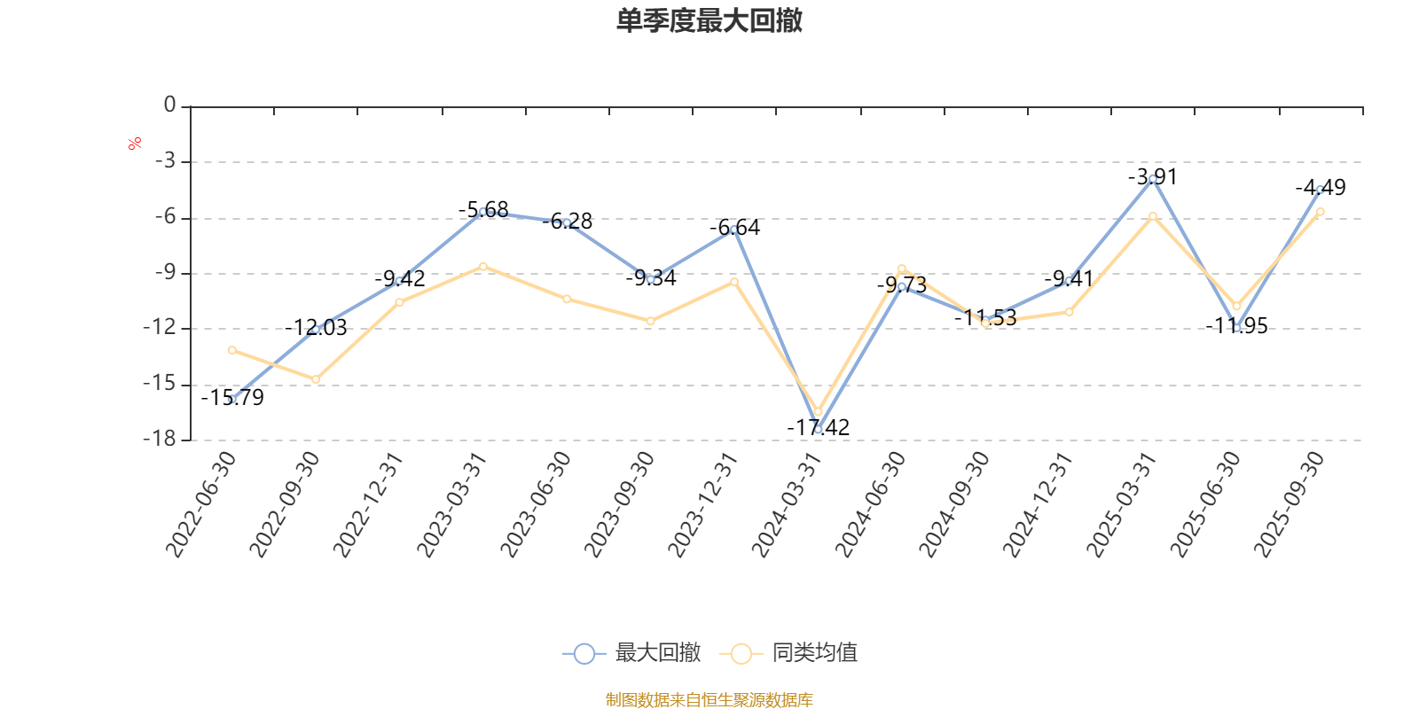 截至10月28日,基金近三年最大回撤为28.38%,同类可比基金排名93/513。单季度最大回撤出现在2024年一季度,为17.42%。