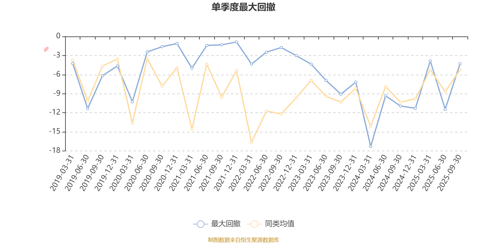截至10月28日,基金近三年最大回撤为26.09%,同类可比基金排名409/1274。单季度最大回撤出现在2024年一季度,为17.31%。