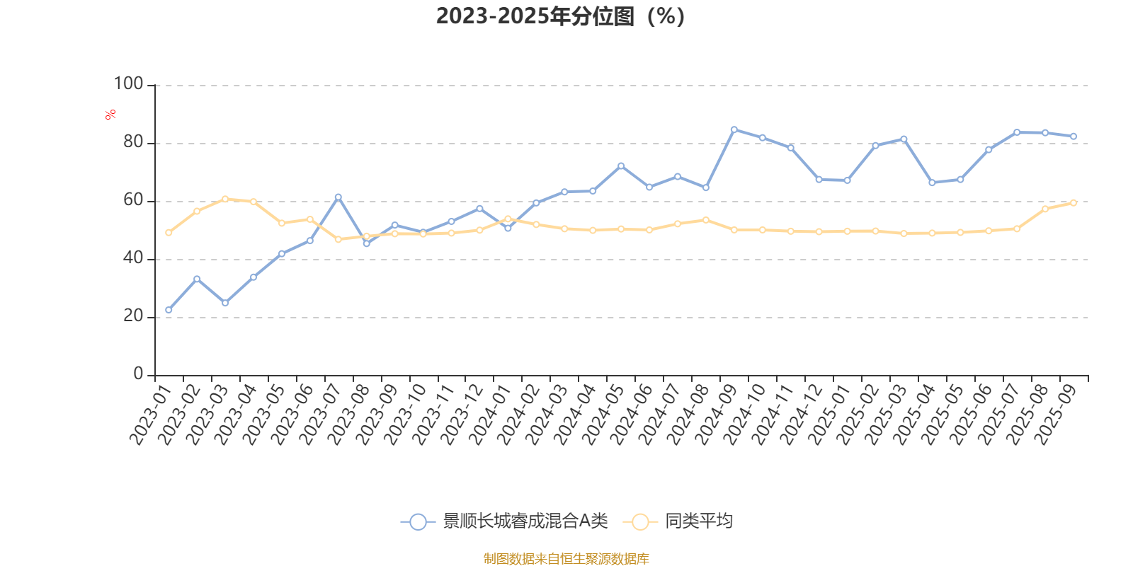 通过所选区间该基金净值增长率分位图,可以观察该基金与同类基金业绩比较情况。图为坐标原点到区间内某时点的净值增长率在同类基金中的分位数。
