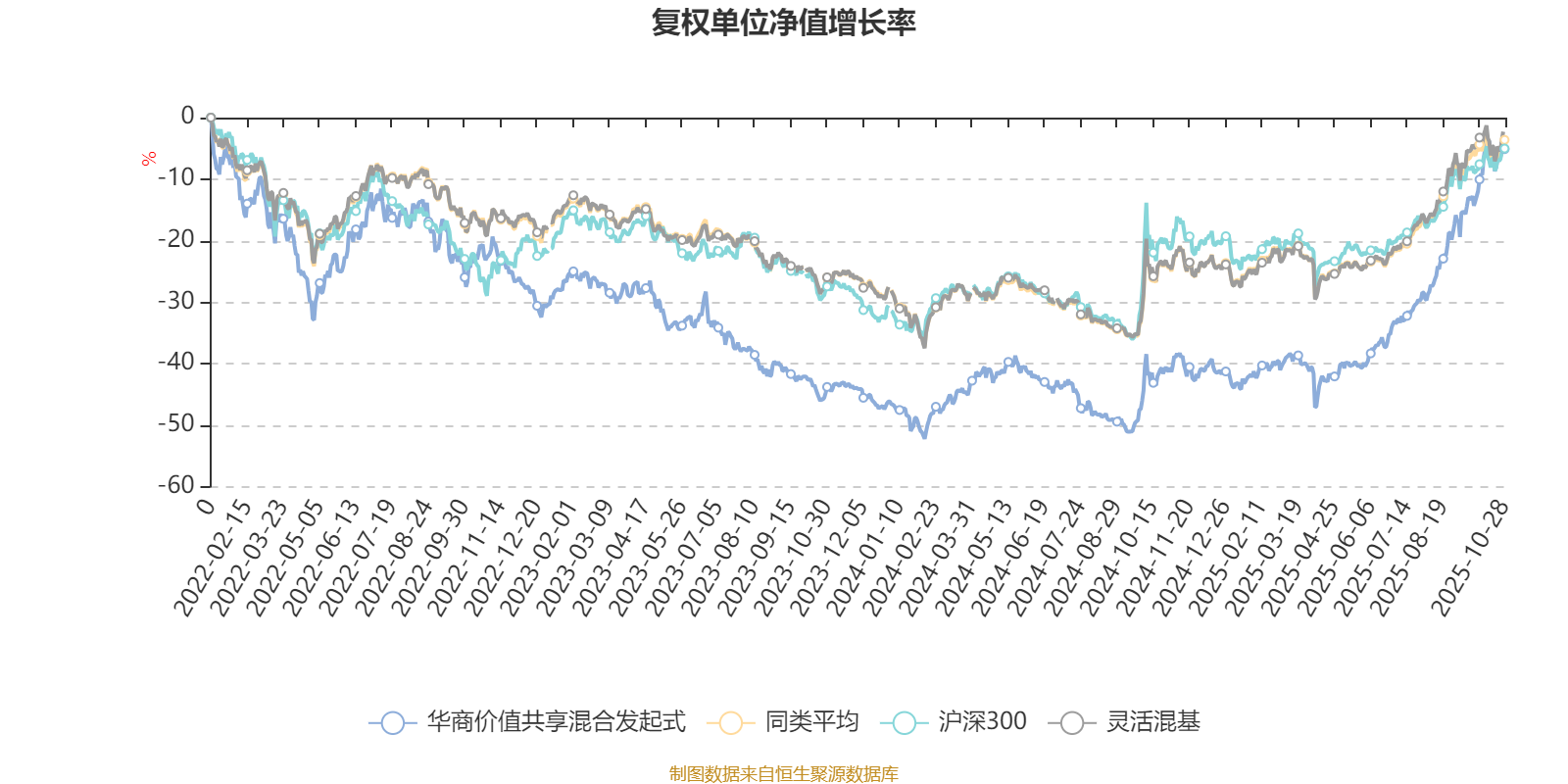 截至10月28日,华商价值共享混合发起式近三个月复权单位净值增长率为34.58%,位于同类可比基金127/1287;近半年复权单位净值增长率为64.54%,位于同类可比基金87/1287;近一年复权单位净值增长率为59.61%,位于同类可比基金94/1287;近三年复权单位净值增长率为23.48%,位于同类可比基金488/1286。