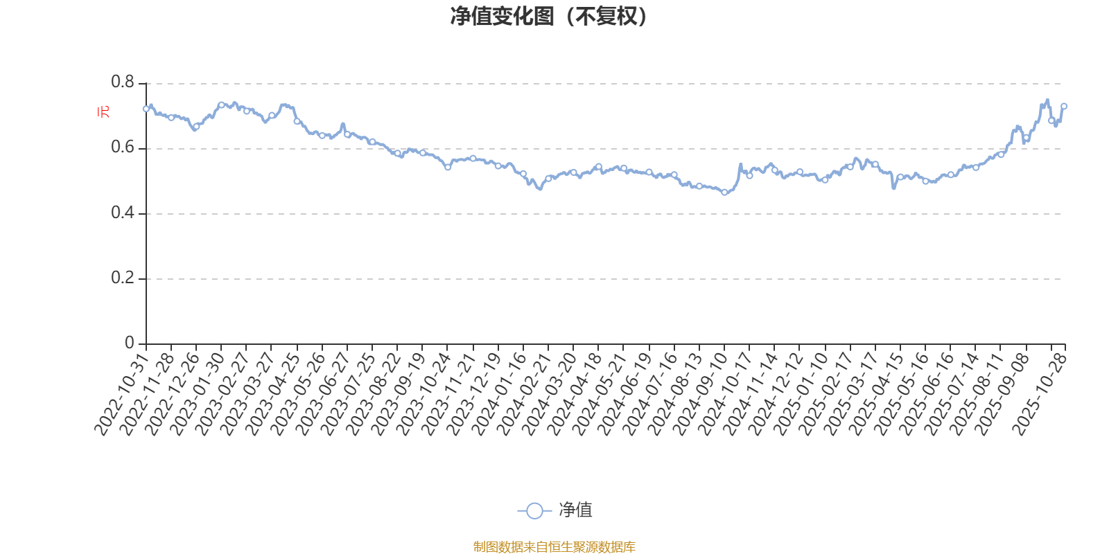 该基金属于灵活配置型基金。截至10月28日,单位净值为0.729元。基金经理是刘力,目前管理5只基金。其中,截至10月28日,华商数字经济混合A近一年复权单位净值增长率最高,达64.12%;华商领先企业混合最低,为35.3%。