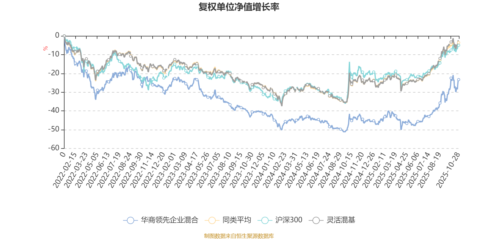 截至10月28日,华商领先企业混合近三个月复权单位净值增长率为28.82%,位于同类可比基金178/1287;近半年复权单位净值增长率为43.47%,位于同类可比基金219/1287;近一年复权单位净值增长率为35.30%,位于同类可比基金310/1287;近三年复权单位净值增长率为1.52%,位于同类可比基金994/1286。