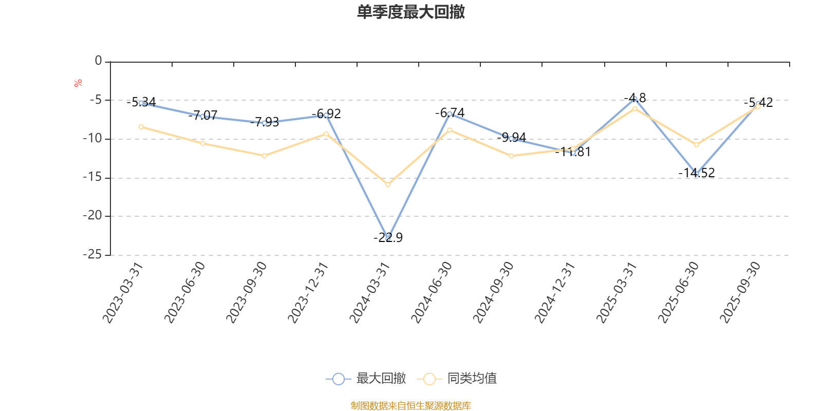 截至10月28日,基金近三年最大回撤为32.59%,同类可比基金排名115/363。单季度最大回撤出现在2024年一季度,为22.9%。