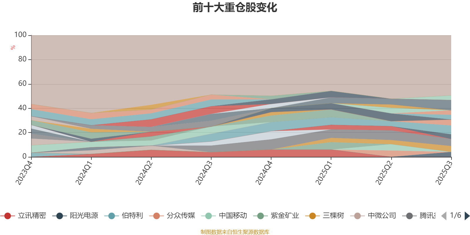 截至2025年三季度末,基金十大重仓股分别是阿里巴巴-W、宁德时代、腾讯控股、三棵树、小商品城、阳光电源、震裕科技、小米集团-W、华友钴业、中国生物制药。
