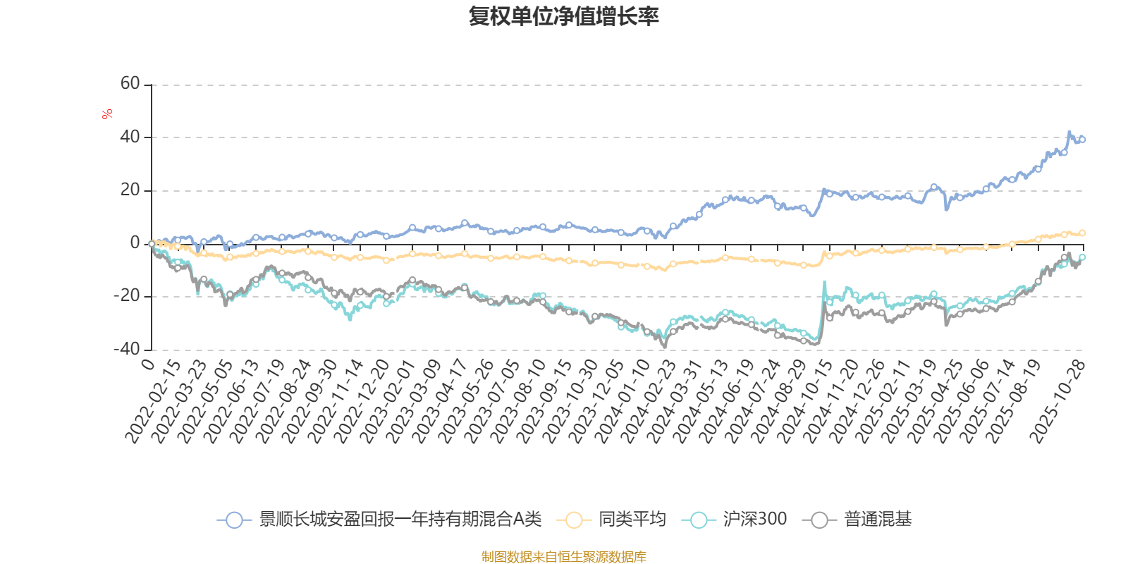 截至10月28日,景顺长城安盈回报一年持有期混合A类近三个月复权单位净值增长率为10.41%,位于同类可比基金17/629;近半年复权单位净值增长率为18.74%,位于同类可比基金19/629;近一年复权单位净值增长率为16.92%,位于同类可比基金36/623;近三年复权单位净值增长率为38.20%,位于同类可比基金6/557。