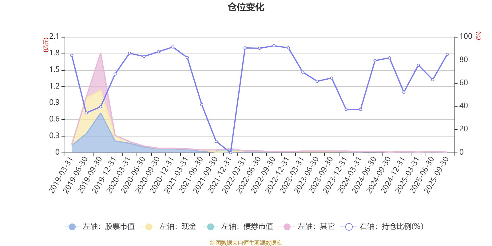 据定期报告数据统计,近三年平均股票仓位为66.51%,同类平均为72.35%。2022年三季度末基金达到92.33%的最高仓位,2021年三季度末最低,为9.71%。