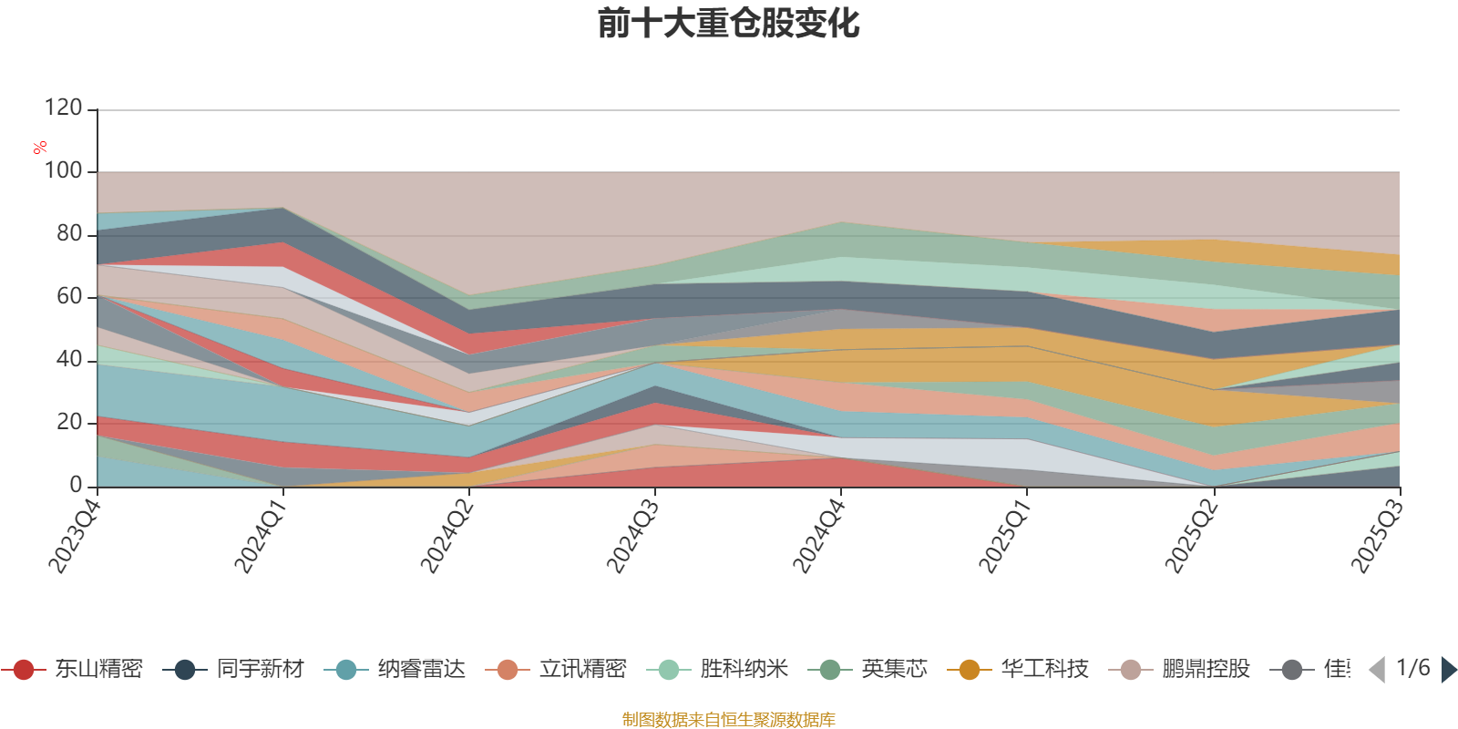 该基金持股集中度较高,近2年前十大重仓股集中度长期超过60%。截至2025年三季度末,基金十大重仓股分别是瑞芯微、光迅科技、盛科通信、光环新网、振华风光、同宇新材、中航高科、多浦乐、紫光股份、胜科纳米。