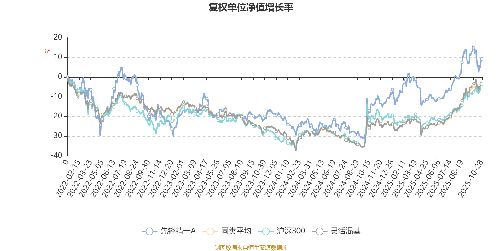 截至10月28日,先锋精一A近三个月复权单位净值增长率为8.86%,位于同类可比基金762/1287;近半年复权单位净值增长率为23.40%,位于同类可比基金656/1287;近一年复权单位净值增长率为27.93%,位于同类可比基金470/1287;近三年复权单位净值增长率为40.68%,位于同类可比基金234/1286。