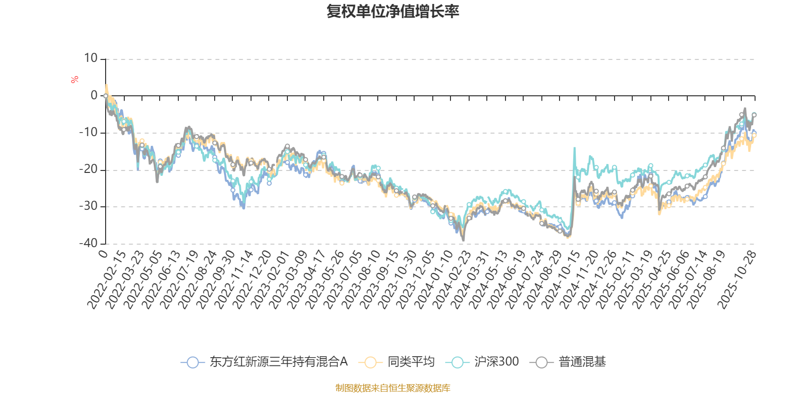 截至10月28日,东方红新源三年持有混合A近三个月复权单位净值增长率为17.75%,位于同类可比基金32/134;近半年复权单位净值增长率为26.17%,位于同类可比基金55/134;近一年复权单位净值增长率为23.22%,位于同类可比基金50/130;近三年复权单位净值增长率为29.51%,位于同类可比基金35/119。
