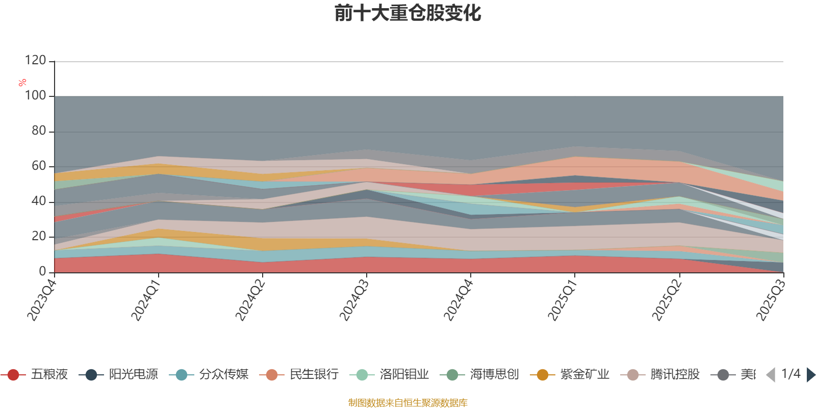 该基金持股集中度较高。截至2025年三季度末,基金十大重仓股分别是腾讯控股、中芯国际、亿纬锂能、阳光电源、海博思创、阿里巴巴-W、宁德时代、药明康德、赣锋锂业、恒瑞医药。