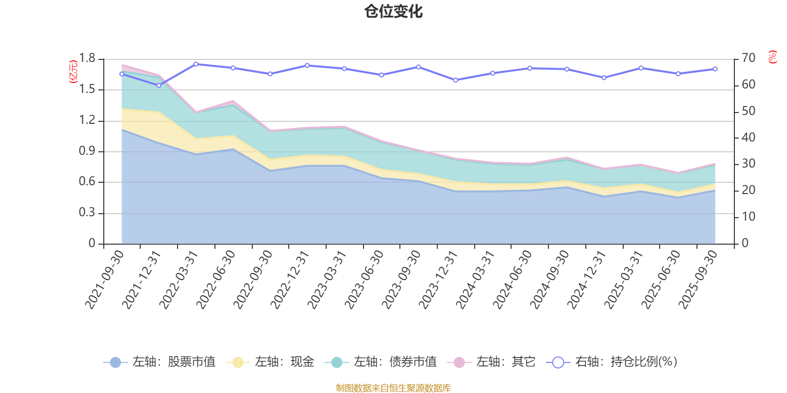 据定期报告数据统计,近三年平均股票仓位为65.34%,同类平均为67.37%。2022年一季度末基金达到68.05%的最高仓位,2021年末最低,为59.99%。
