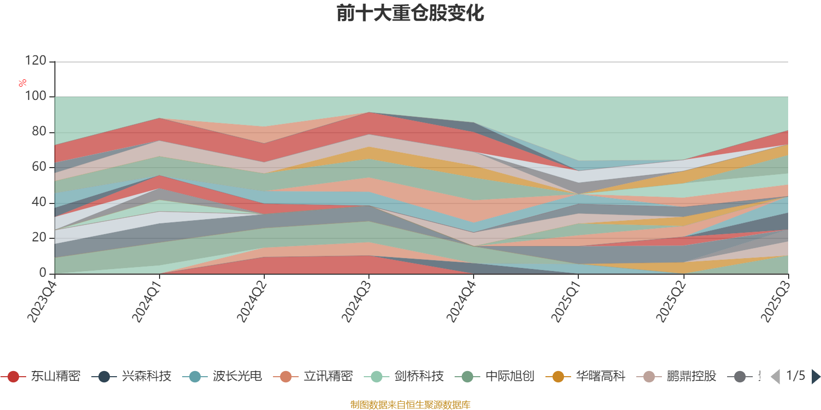 该基金持股集中度较高,近2年前十大重仓股集中度长期超过60%。截至2025年三季度末,基金十大重仓股分别是沪电股份、中际旭创、生益科技、深南电路、鹏鼎控股、新易盛、景旺电子、生益电子、翱捷科技、胜宏科技。