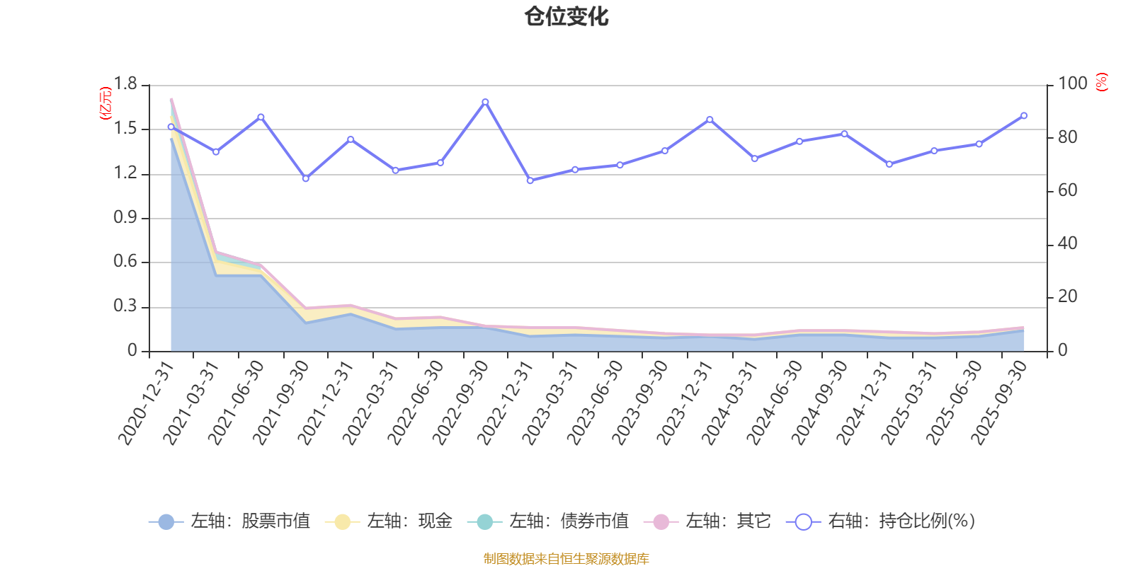 据定期报告数据统计,近三年平均股票仓位为75.76%,同类平均为86.77%。2022年三季度末基金达到93.61%的最高仓位,2022年末最低,为64.09%。