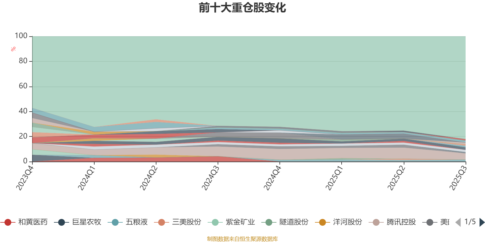 截至2025年三季度末,基金十大重仓股分别是腾讯控股、宁德时代、贵州茅台、比亚迪、五粮液、药明康德、迈瑞医疗、海康威视、中触媒、震裕科技。