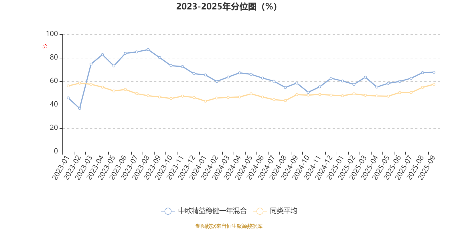 通过所选区间该基金净值增长率分位图,可以观察该基金与同类基金业绩比较情况。图为坐标原点到区间内某时点的净值增长率在同类基金中的分位数。