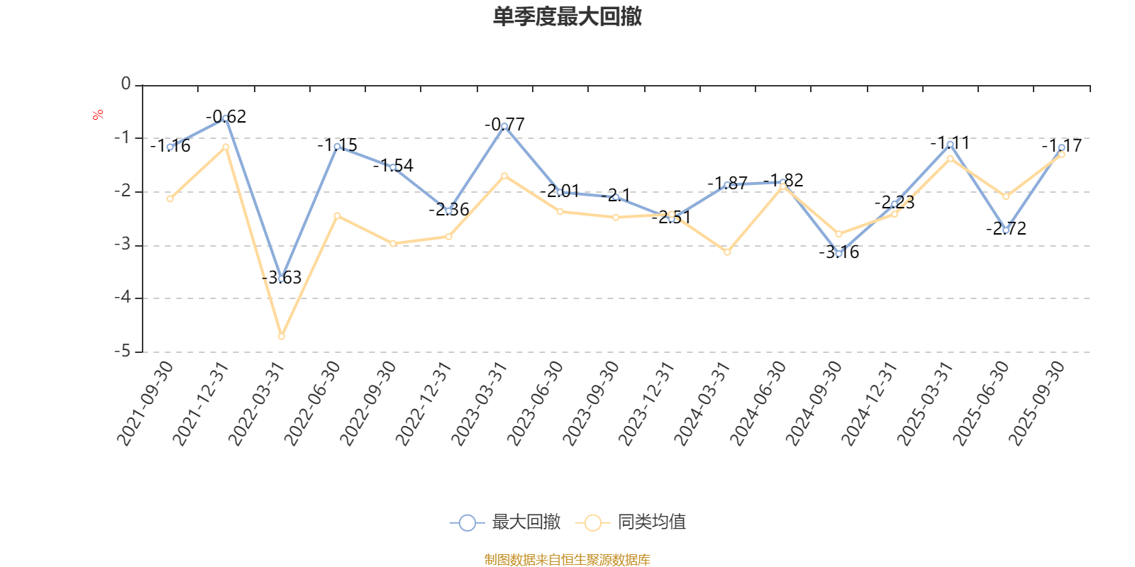 截至10月28日,基金近三年最大回撤为5.13%,同类可比基金排名199/535。单季度最大回撤出现在2022年一季度,为3.63%。