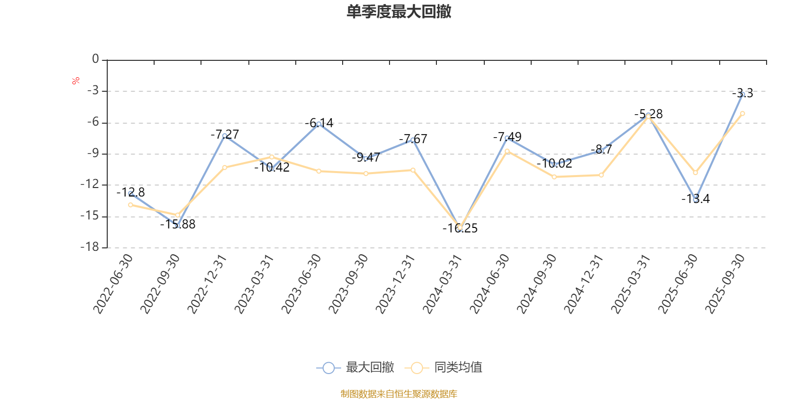 截至10月27日,基金近三年最大回撤为28.13%,同类可比基金排名31/177。单季度最大回撤出现在2024年一季度,为16.25%。