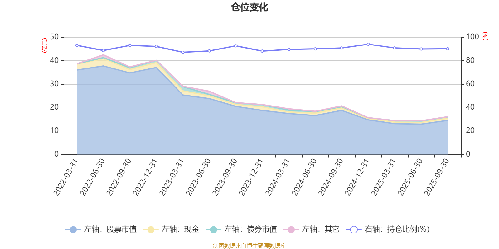 据定期报告数据统计,近三年平均股票仓位为90.42%,同类平均为87.62%。2024年末基金达到94.12%的最高仓位,2023年一季度末最低,为87.24%。