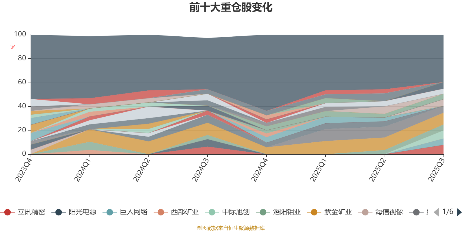 截至2025年三季度末,基金十大重仓股分别是紫金矿业、立讯精密、中际旭创、铜陵有色、腾讯控股、工业富联、巨人网络、洛阳钼业、恺英网络、阿里巴巴-W。