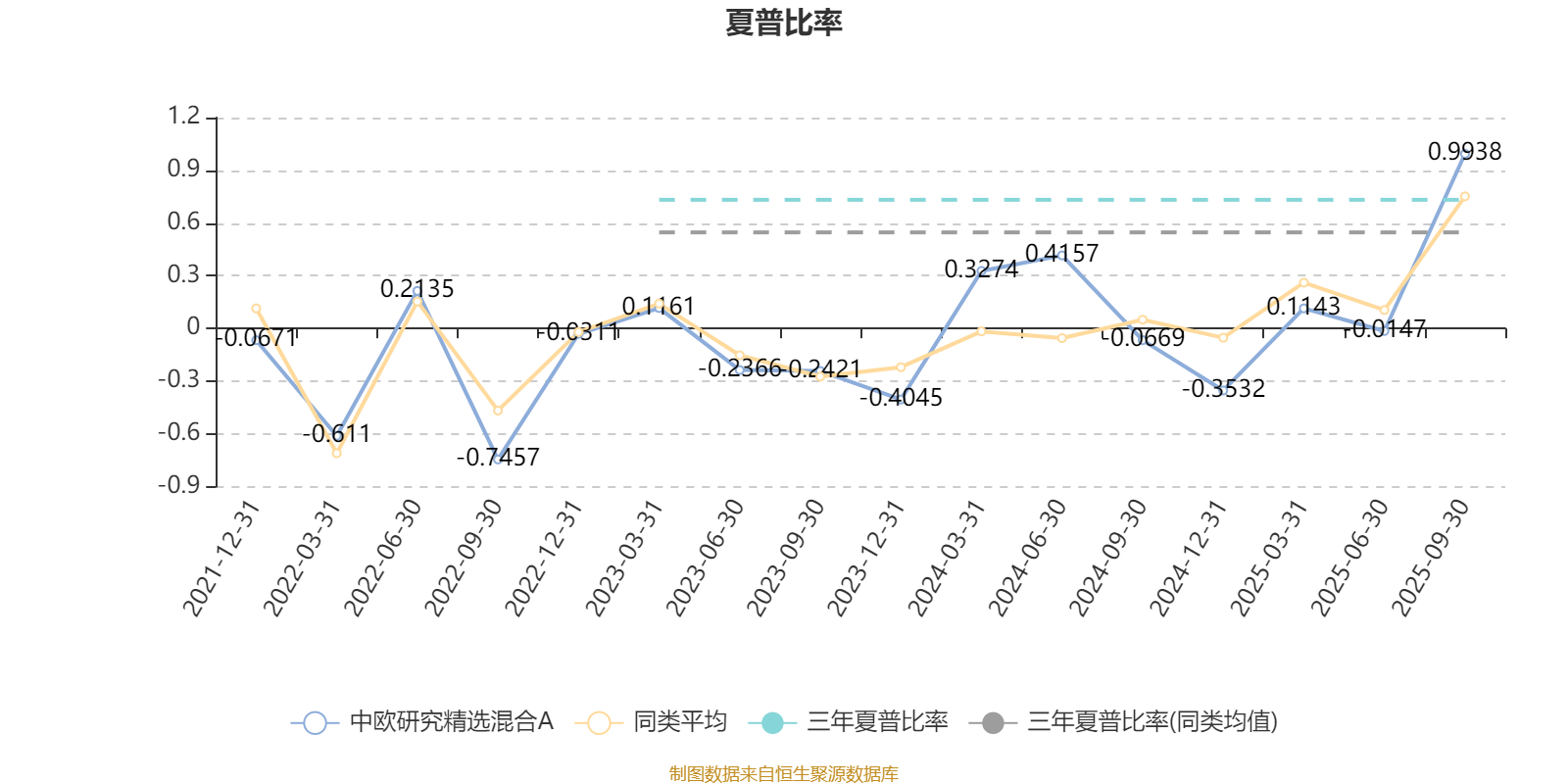 截至9月30日,基金近三年夏普比率为0.7325,位于同类可比基金69/252。