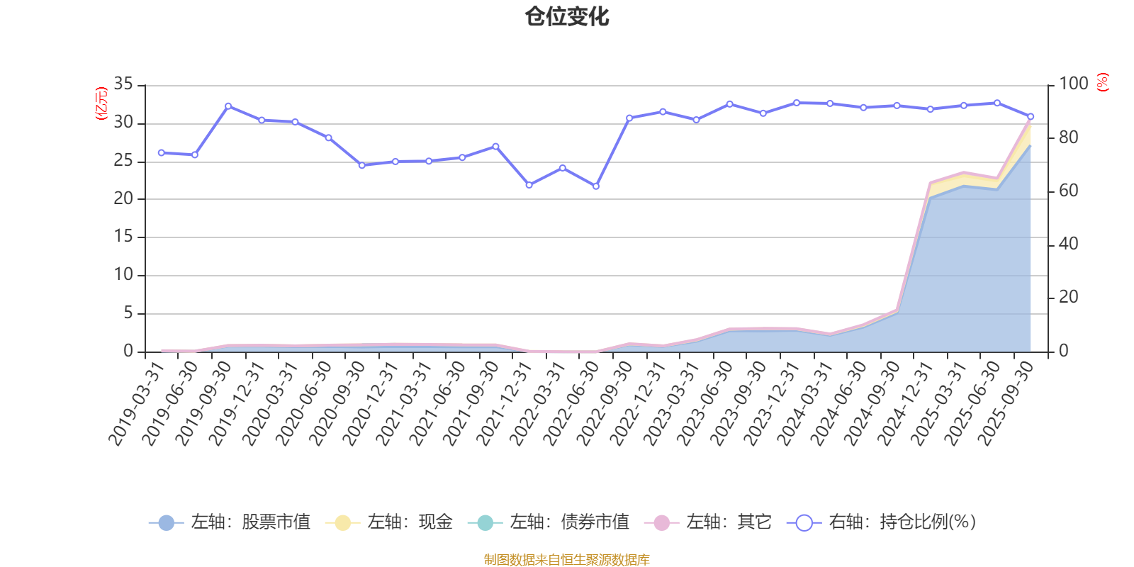 据定期报告数据统计,近三年平均股票仓位为91.2%,同类平均为86.77%。2023年末基金达到93.36%的最高仓位,2022年上半年末最低,为62.08%。