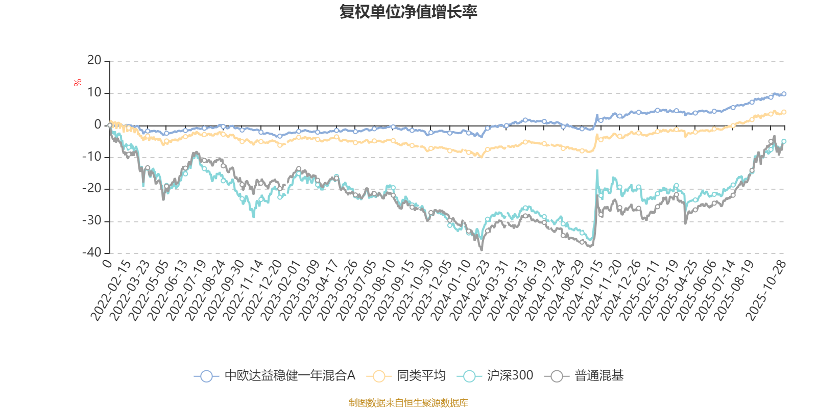 截至10月28日,中欧达益稳健一年混合A近三个月复权单位净值增长率为3.27%,位于同类可比基金220/629;近半年复权单位净值增长率为5.84%,位于同类可比基金289/629;近一年复权单位净值增长率为7.22%,位于同类可比基金279/623;近三年复权单位净值增长率为11.46%,位于同类可比基金288/557。