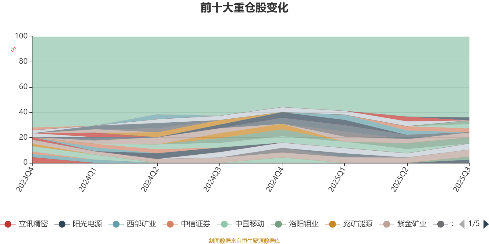 截至2025年三季度末,基金十大重仓股分别是紫金矿业、宁德时代、新华保险、徐工机械、金风科技、齐鲁银行、牧原股份、洛阳钼业、阳光电源、华友钴业。