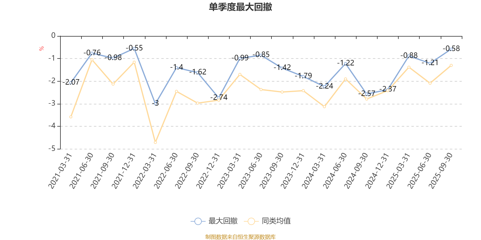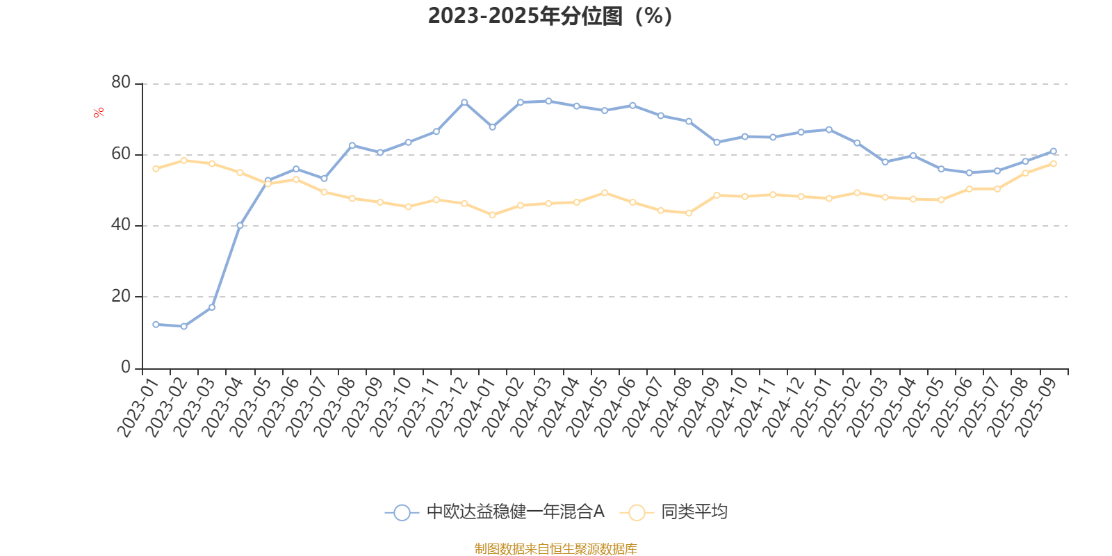 通过所选区间该基金净值增长率分位图,可以观察该基金与同类基金业绩比较情况。图为坐标原点到区间内某时点的净值增长率在同类基金中的分位数。