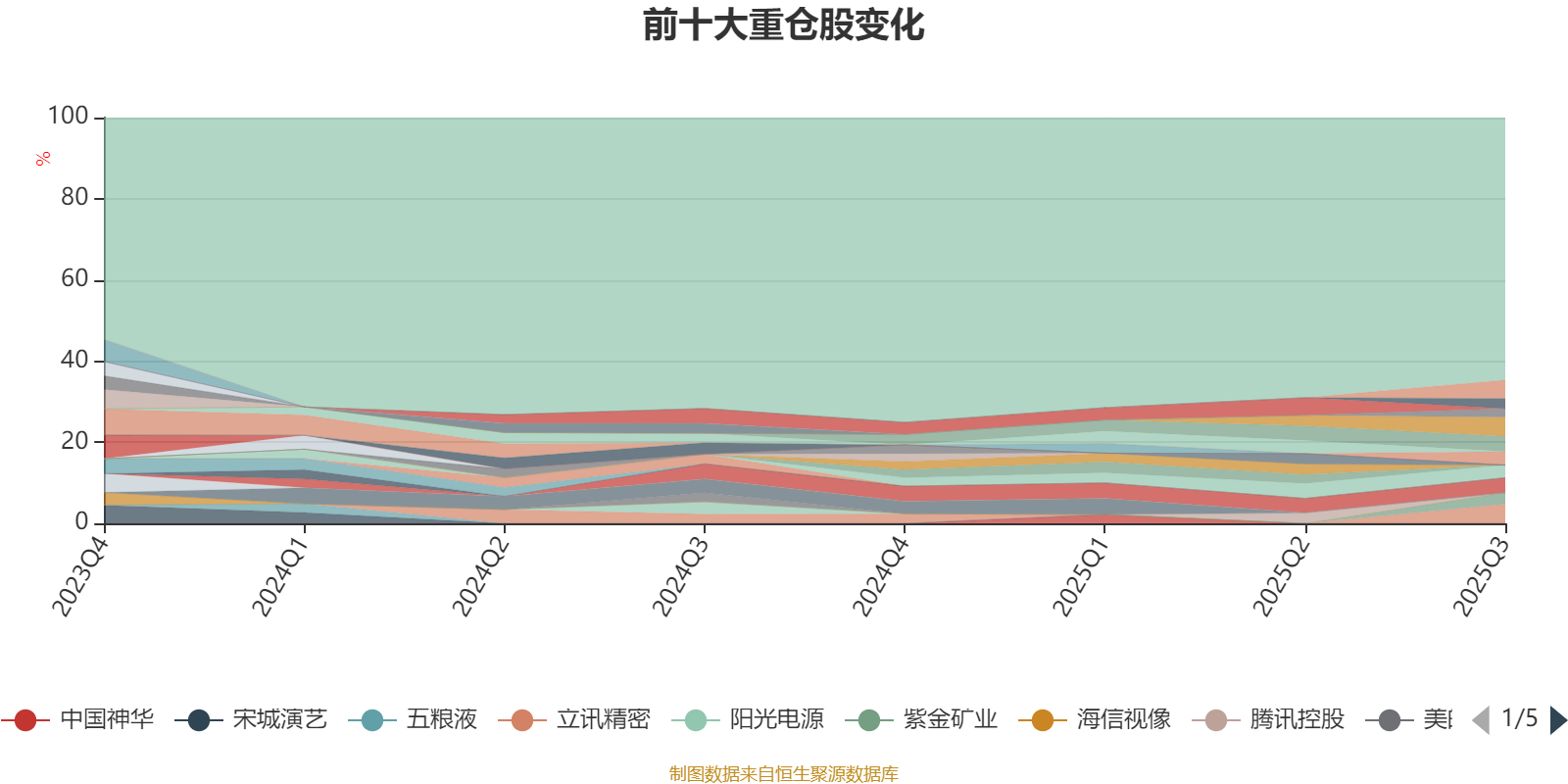 截至2025年三季度末,基金十大重仓股分别是立讯精密、亿纬锂能、兆易创新、宁德时代、中国平安、牧原股份、招商银行、紫金矿业、三七互娱、东材科技。