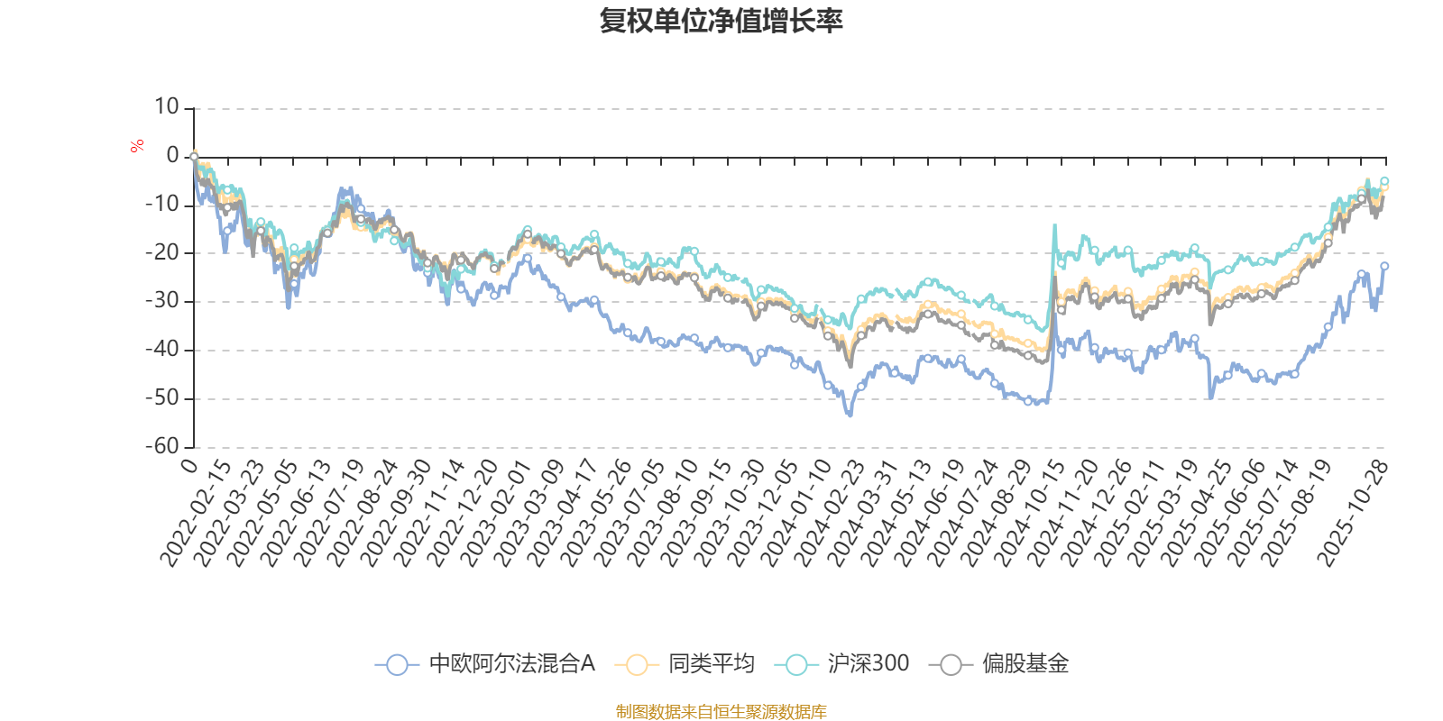 截至10月28日,中欧阿尔法混合A近三个月复权单位净值增长率为28.98%,位于同类可比基金21/130;近半年复权单位净值增长率为40.84%,位于同类可比基金33/130;近一年复权单位净值增长率为25.14%,位于同类可比基金72/130;近三年复权单位净值增长率为11.10%,位于同类可比基金91/124。