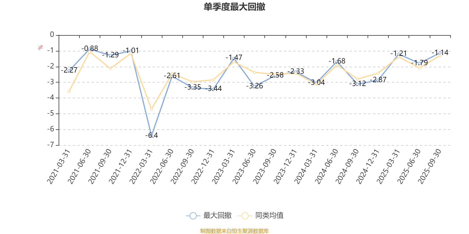 截至10月28日,基金近三年最大回撤为7.01%,同类可比基金排名310/535。单季度最大回撤出现在2022年一季度,为6.4%。