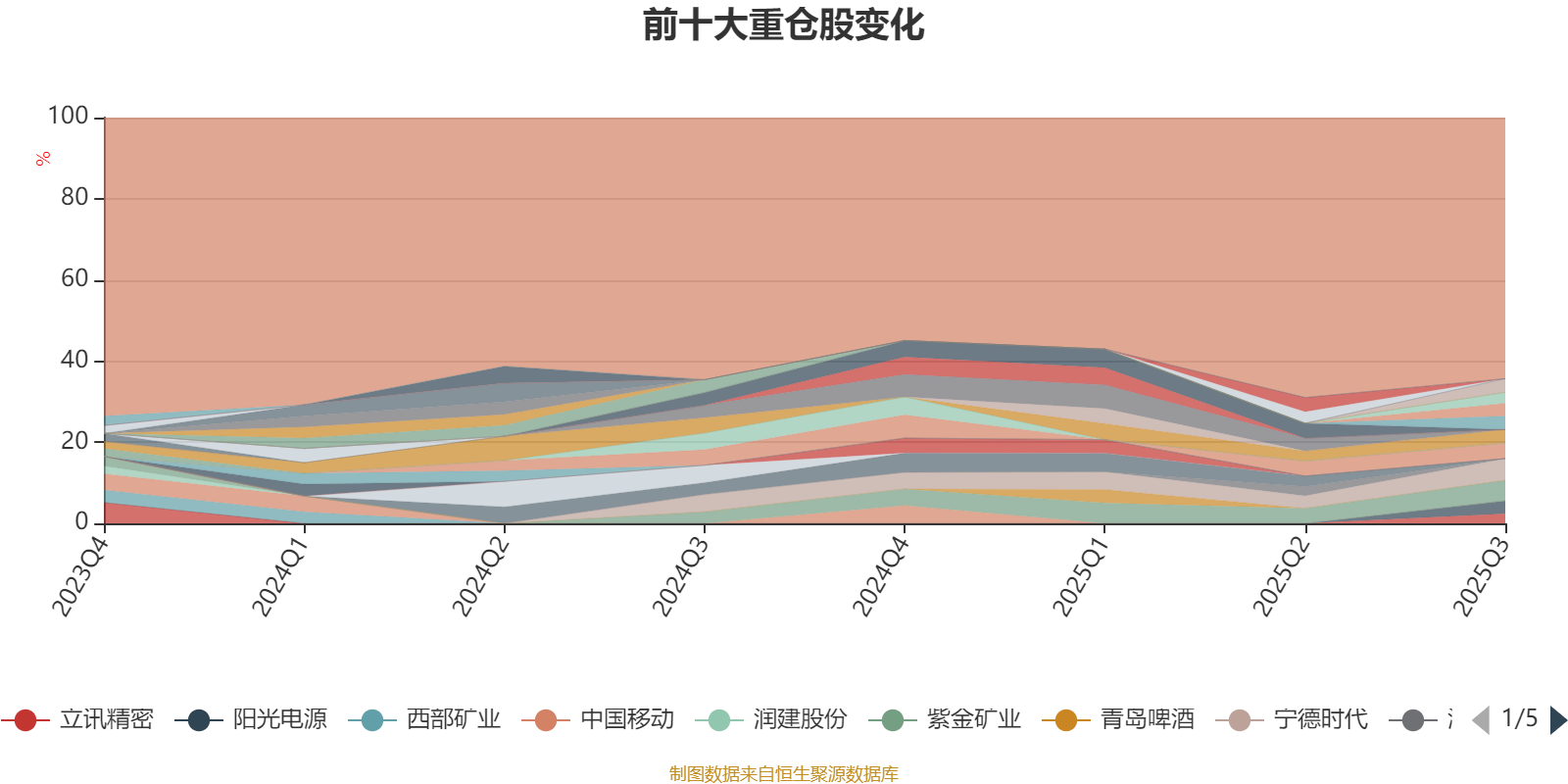 截至2025年三季度末,基金十大重仓股分别是宁德时代、紫金矿业、新华保险、杭州银行、金风科技、徐工机械、阳光电源、牧原股份、齐鲁银行、立讯精密。
