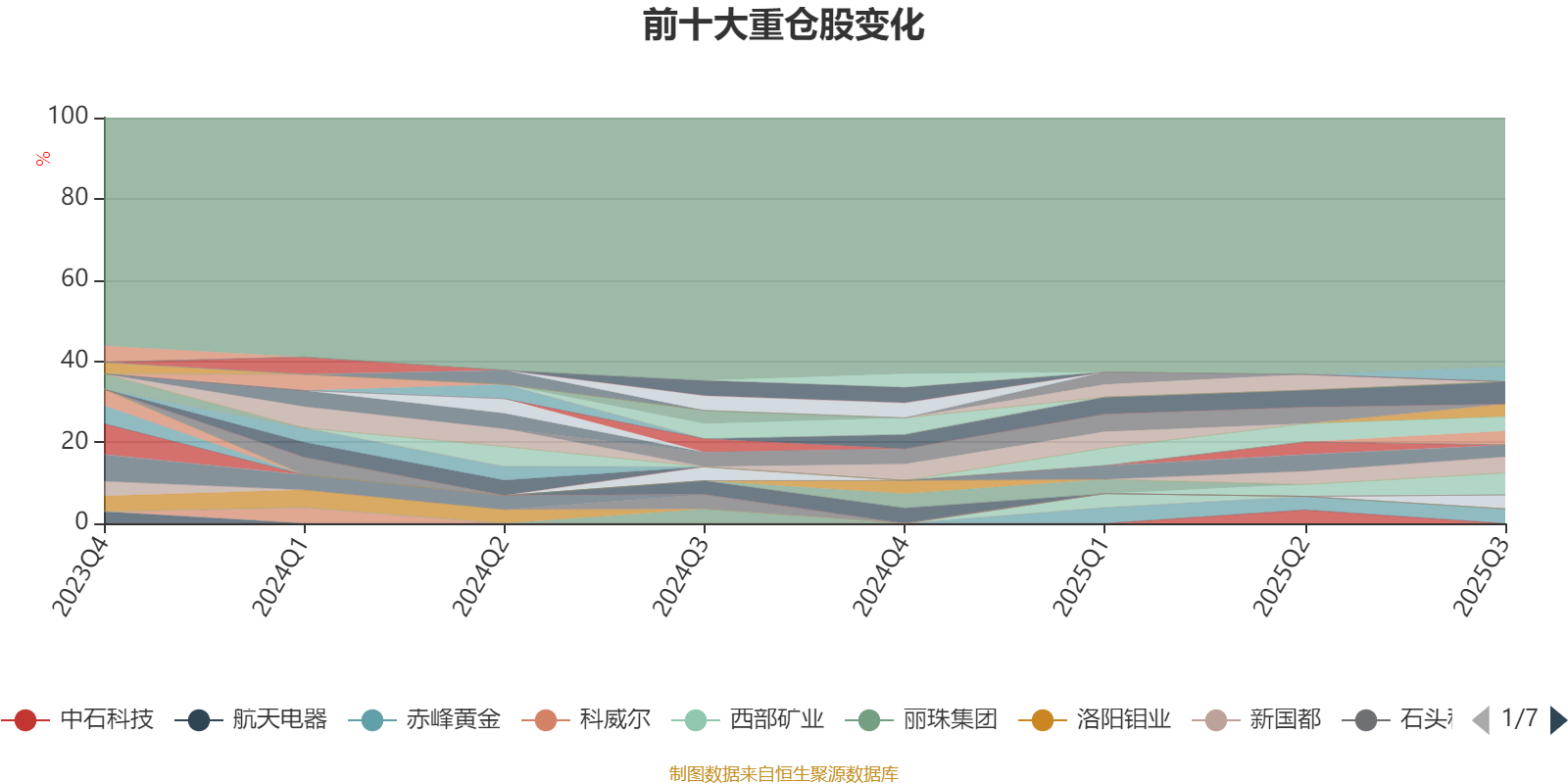 截至2025年三季度末,基金十大重仓股分别是恺英网络、科达利、东睦股份、华友钴业、赤峰黄金、特锐德、皖维高新、新华保险、圣泉集团、厦钨新能。
