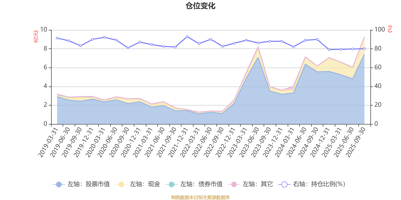 据定期报告数据统计,近三年平均股票仓位为84.79%,同类平均为88.27%。2021年末基金达到92.97%的最高仓位,2024年末最低,为79.23%。