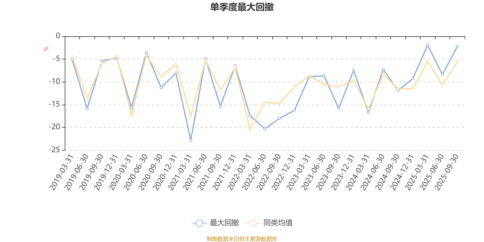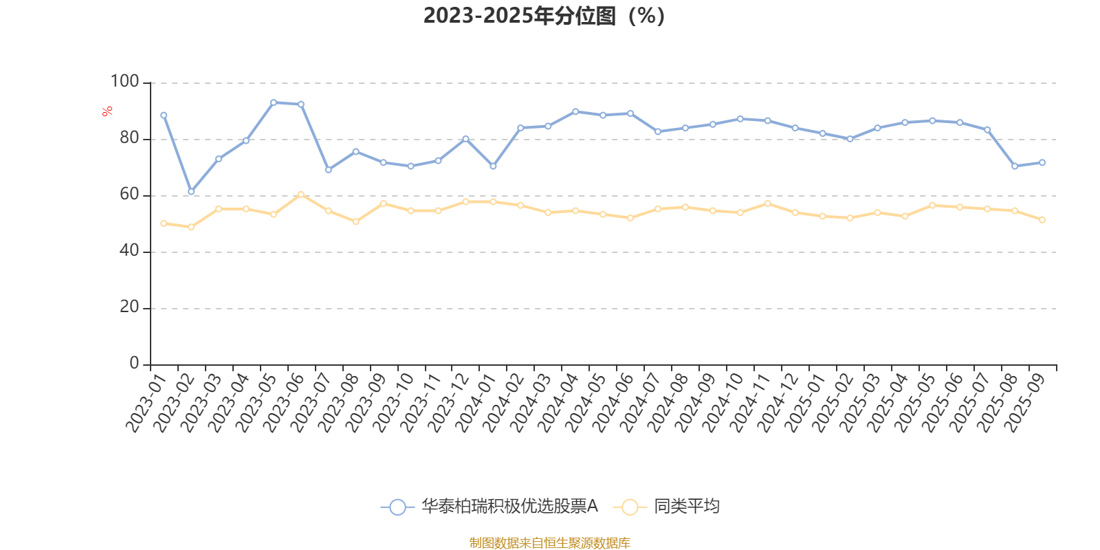 通过所选区间该基金净值增长率分位图,可以观察该基金与同类基金业绩比较情况。图为坐标原点到区间内某时点的净值增长率在同类基金中的分位数。