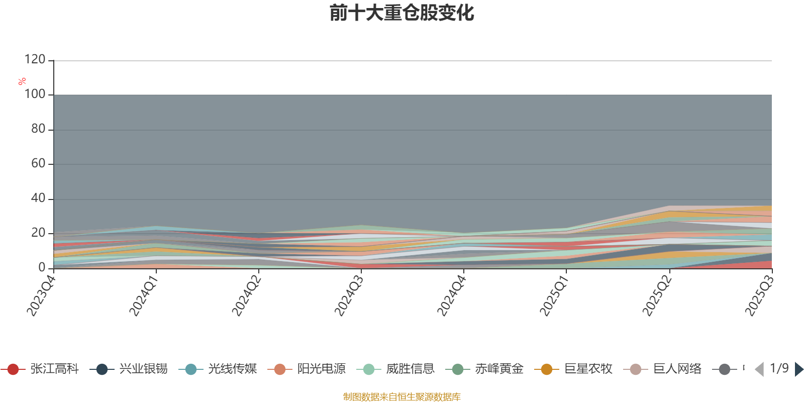 截至2025年三季度末,基金十大重仓股分别是兴业银锡、张江高科、巨人网络、神州泰岳、亨通光电、滨江集团、华侨城A、捷成股份、华测导航、中国国贸。