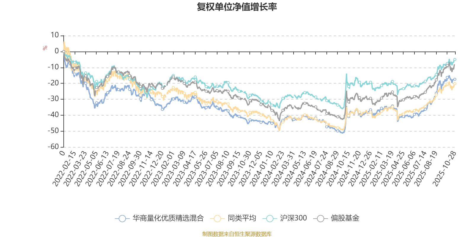 截至10月28日,华商量化优质精选混合近三个月复权单位净值增长率为21.70%,位于同类可比基金165/621;近半年复权单位净值增长率为40.74%,位于同类可比基金137/619;近一年复权单位净值增长率为33.04%,位于同类可比基金241/611;近三年复权单位净值增长率为13.19%,位于同类可比基金300/518。
